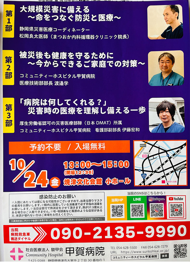甲賀病院主催市民公開講座 テーマ『大規模災害に備える』〜命をつなぐ防災と医療〜について講演しました。